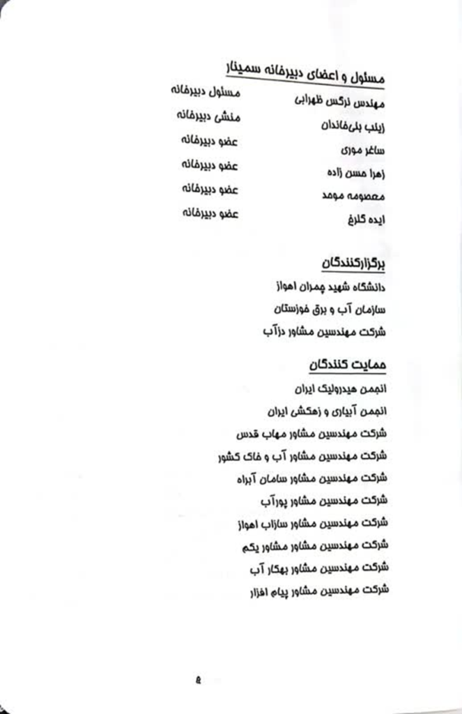 دانشگاه شهید چمران اهواز،سازمان آب و برق خوزستان و شرکت مهندسی مشاور دز آب سه پایه همیشگی و ستونهای اصلی برگزارکنندگان این سمینار بودند.