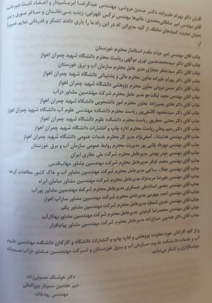 پیام دکتر عبدالکریم بهنیا به سیزدهمین دوره سمینار بین المللی مهندسی رودخانه