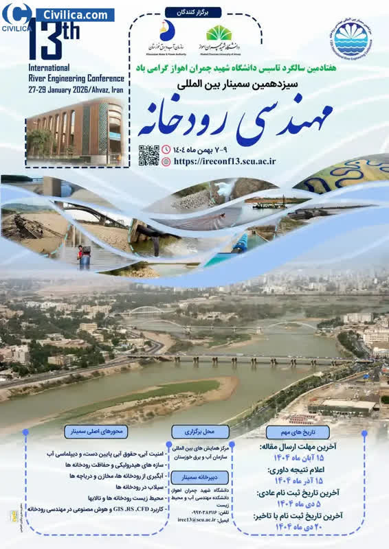 دبیرخانه سیزدهمین دوره سمینار بین المللی مهندسی رودخانه 1404 با همکاری شرکت مهندسین مشاور دزآب  تقدیم می کند.
