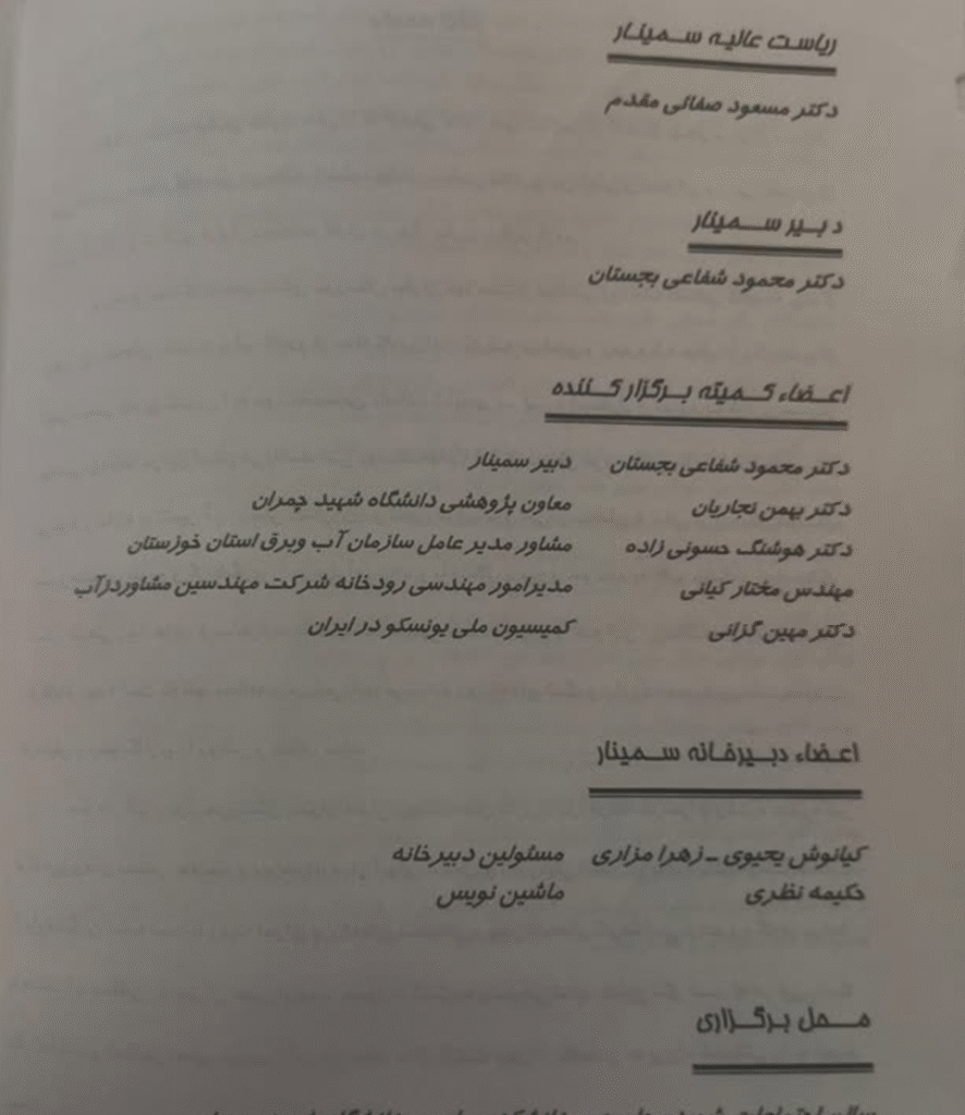 بابک شهنی دارابی .در بهمن 1381، سالن دانشکده علوم دانشگاه شهید چمران اهواز دوباره میعادگاه اصحاب آب است و ما پس از چهار سال به انجا برمی گردیم. جاییکه میزبان اجلاس دوره های دوم تا پنجم بود . اکنون روال برگزاری دوسالانه سمینار تغییر کرده بود و سمینار پس از چهار سال برپا شد والبته […]