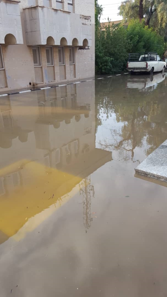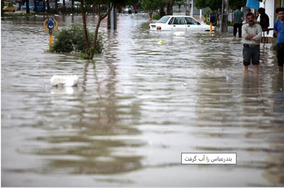 دچار آب گرفتگي شده و از حجم 21.2 میلیون مترمکعب بیشینه رواناب تخمین زده شده ناشي از بارش ، حدود 5 میلیون متر مکعب آب در شهر بصورت ماندابي، حداکثر تا72 ساعت ايجاد شده است. عمده مناطق آب گرفته شده شامل مناطق