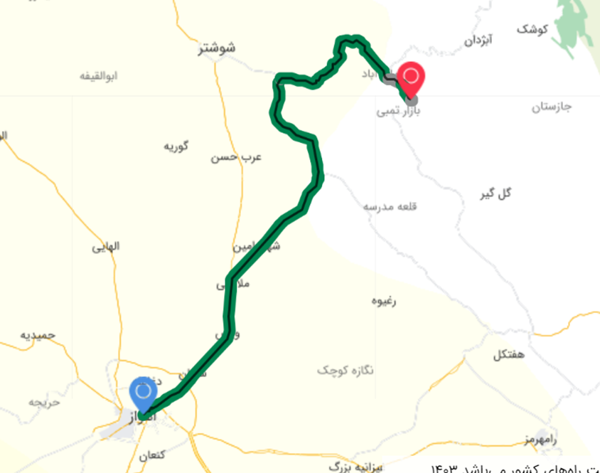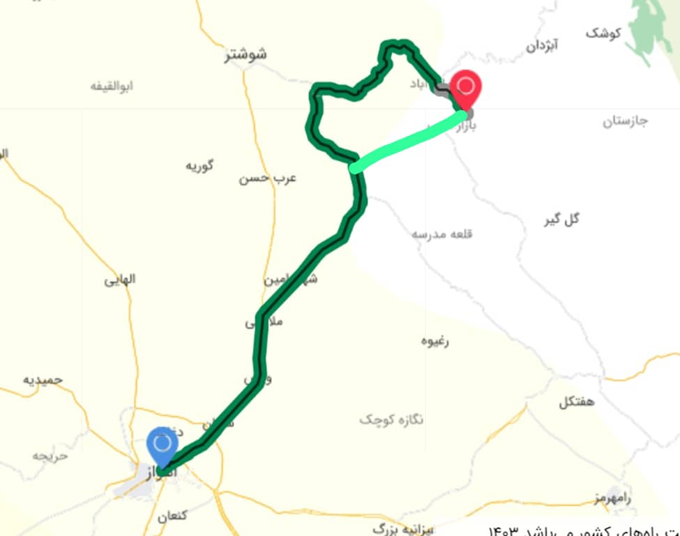 از طریق مسجدسلیمان و جاده میانبر این مسیر به ۱70 کیلومتر کاهش می یابد. اکنون این مسیر از طریق باغملک ۱81 کیلومتر است و همانطور که می دانیم، ایذه دروازه شرقی خوزستان به سوی شهرکرد و اصفهان است.