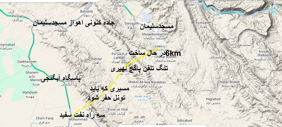 اکنون یک جاده از مسجدسلیمان به تنگ تلفن به طول شش کیلومتر در حال ساخت است.و اگر تونل های بین پاگچ لهبری با سه راهی نفت سفید حفر شود، پازل میانبر تکمیل خواهد شد .بدین ترتیب مسافت 40 کیلومتر کاهش می یاید.با ساختن تنها 21 کیلومتری از تمبی به سه راهی نفت سفید مسافت اهواز مسجدسلیمان به زیر 100 کیلومتر خواهد رسید و با توجه به اینکه سراسر مسیر صاف و بدون عوارض خواهد بود، می توان در عرض 50 دقیقه این مسیر را طی کرد.