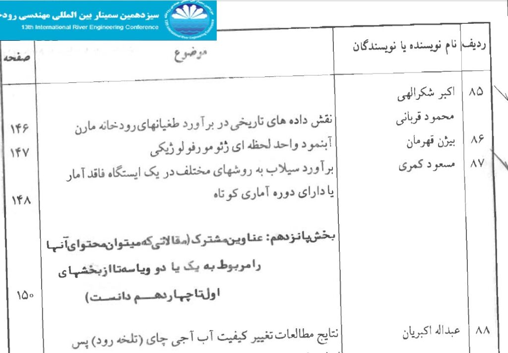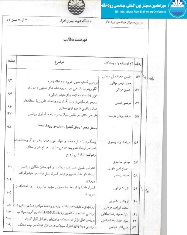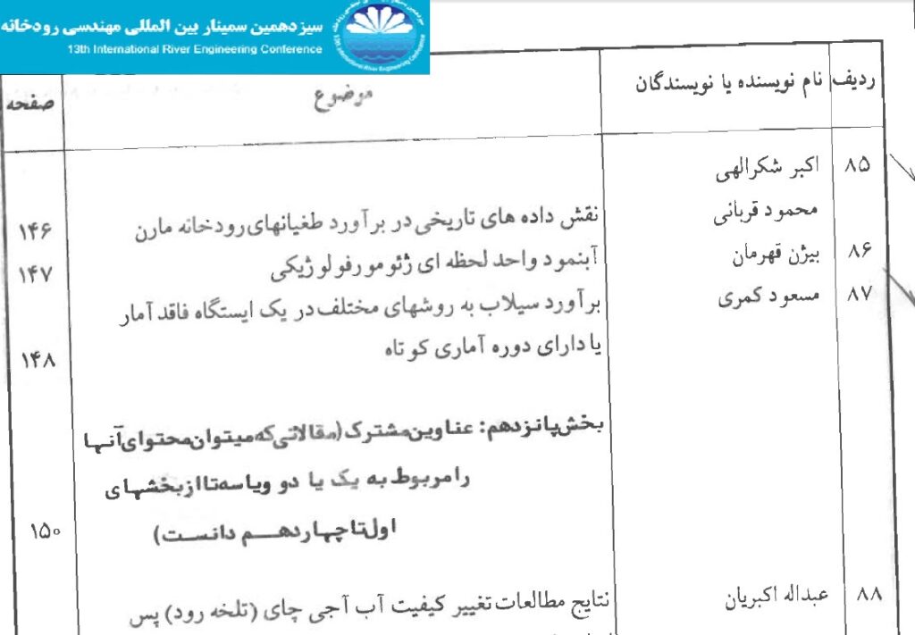 استاد اکبر شکرالهی و مهندس محمود قربانی سازمان آب وبرق خوزستان نقش داده های تاریخی در برآورد طغیانهای رودخانه مارون