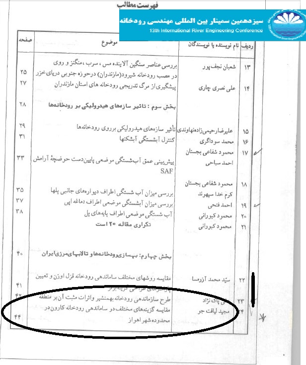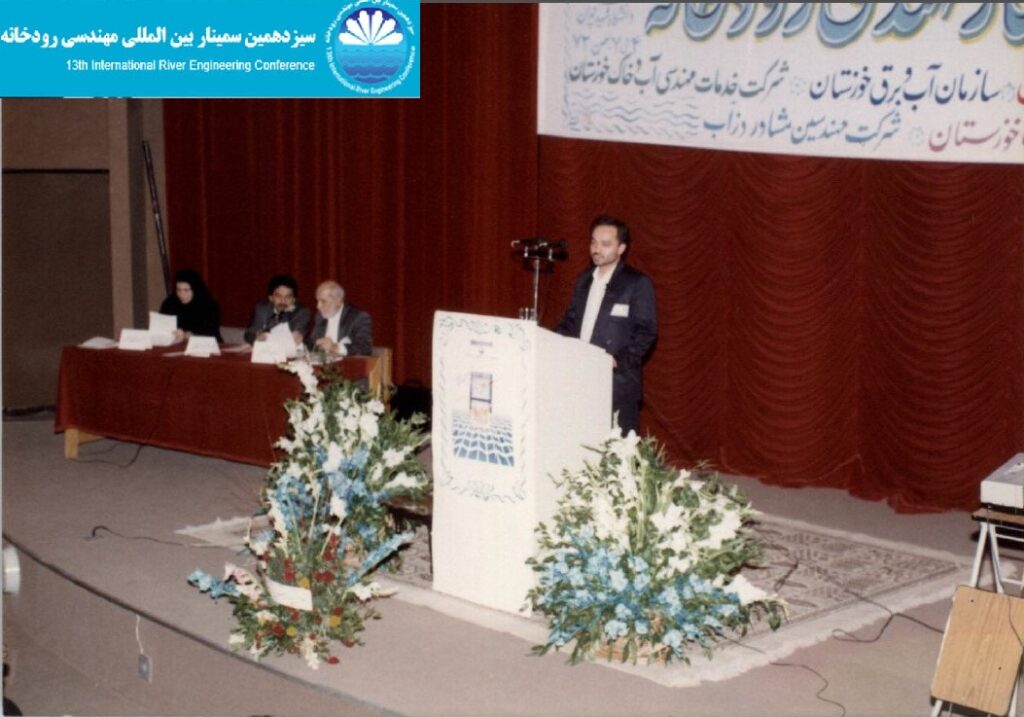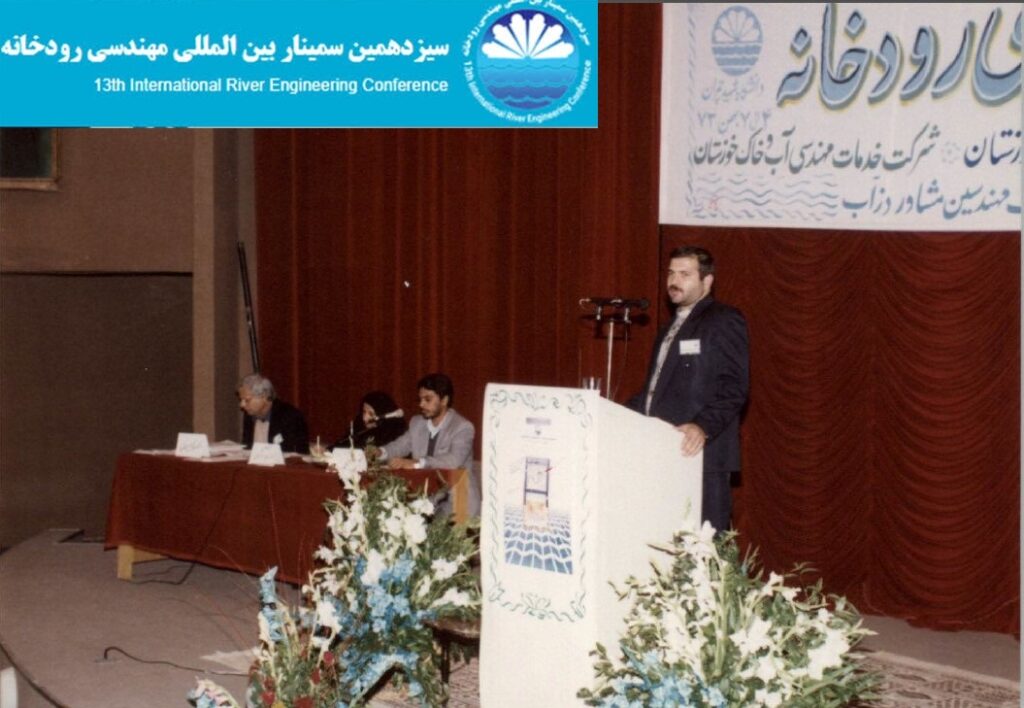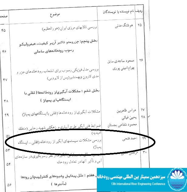 دکتر محمود شفاعی بجستان و مهندس احمد سیاحی از دزآب پیش بینی عمق آبشستگی موضعی پایین دست حوضچه آرامش SAF با ارائه دکتر سیاحی