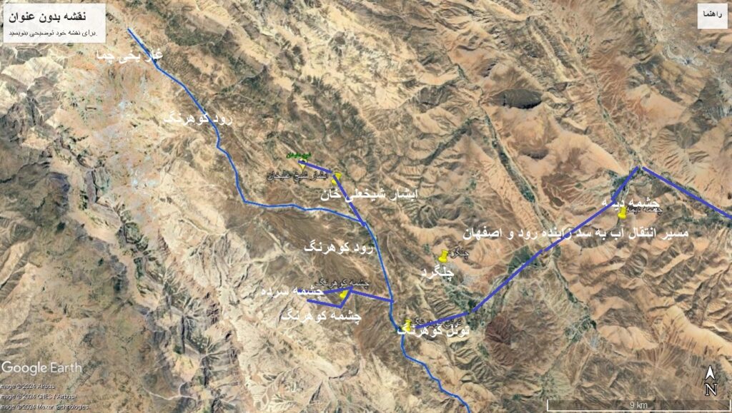 اما در این بخش پرچالش ترین بخش سرکشی به کوهرنگ بود . آب كوهرنگ از ارتفاعات كوهرنگ ، برم ، ونك ، در حوالي چلگرد سرچشمه ودر مسيري به سمت جنوب شرقي، ضمن اضافه شدن شاخه دو آب كليه رواناب منطقه را جمع آوري و در محل حوالي روستاي بهشت آباد با شاخه مهم ديگري به نام بهشت آباد تلاقي مينمايد آب بهشت آباد خود از بهم پيوستن آب جنقان ، آب جهان بين ، آب كيار و شلمزار به وجود مي آيد.
