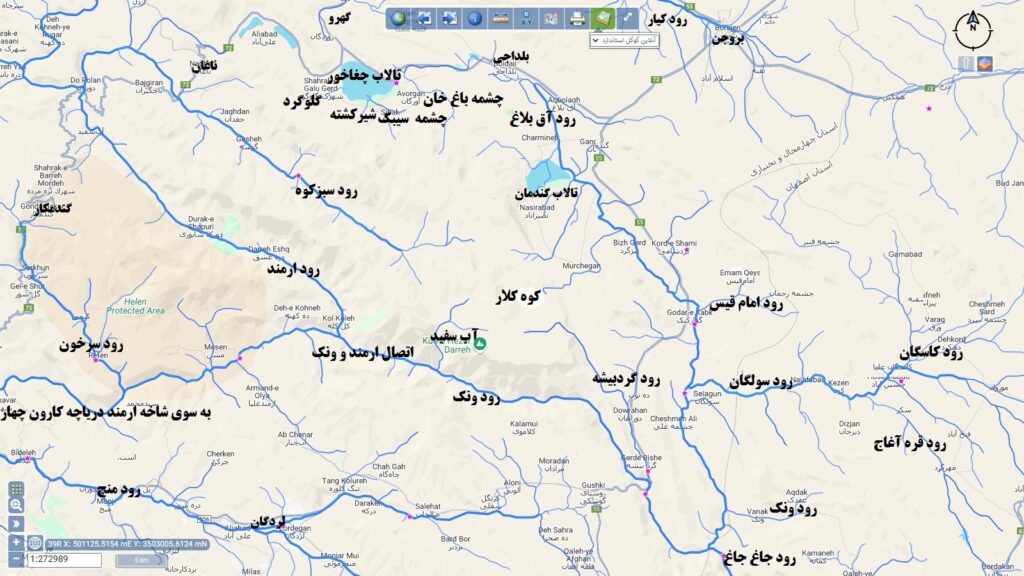 جای قشنگی بود. اما باید شوخی و طعنه های مسئول اداره برفسنجی اصفهان با لهجه شیرینش در مورد چگونگی از دست دادن لوله های برفسنجی سازمان آب وبرق خوزستان را تحمل می کردیم و لبخند می زدیم،باید تاوان بی احتیاطی خود را این چنین می دادیم . اکنون آن لوله ها سهم مارهای ایلاندره شده بود. سپس او لوله های برفسنجی اداره خودشان را به ما تحویل داد . ما رهسپار بروجن شدیم تا راهی مهمانسرای جهانگردی آن شویم . جای زیبا و راحتی بود.بروجن نزدیک سرچشمه رود ونک است و از آنجا به سرچشمه کارون در امام قیس مورچگان و سفید آلی رفتیم. رودخانه قره آقاج با رو دخانه كاسگان ادغام و آب سولگان رابه وجود مي آورند و آب سولگان با آب آق بلاغ ( حاصل رواناب مناطق اطراف مورچه گان ، امام قيس و سميرم ) و آب جاغ جاغ تشكيل آب ونك را مي دهند