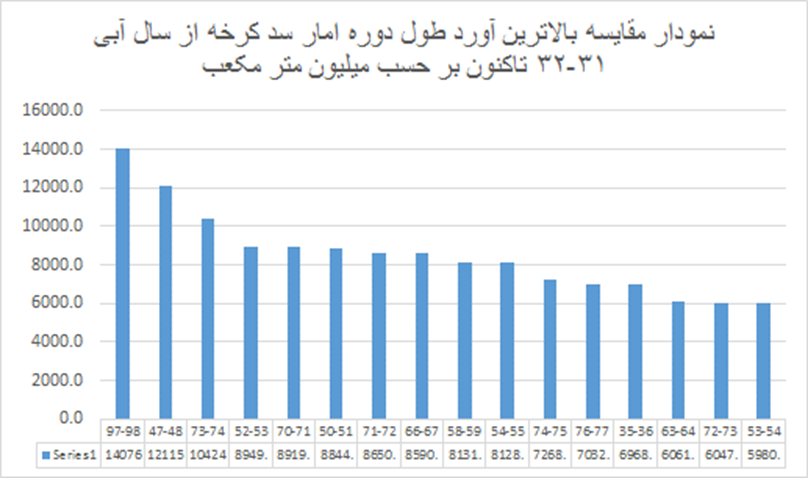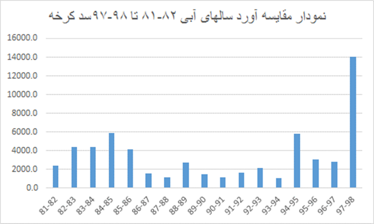 ارزیابی نشان می دهد که آورد سال ابی 97-98 سد کرخه در کل دوره آماری بی سابقه بود .
