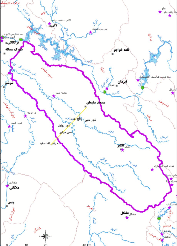 نخستین حوضه که بررسی می شود حوضه بتوند است این حوضه روانابهای جنوب و شرق مسجدسلیمان و شمال هفتگل را جمع آوری می کند این روانابها پس از گذر از پل بتوند به رود کارون پس از سد گتوند می رسد و سپس از طریق اهواز و آبادان به خلیج فارس می ریزد هیچ سدی در مسیر این رودخانه نیست