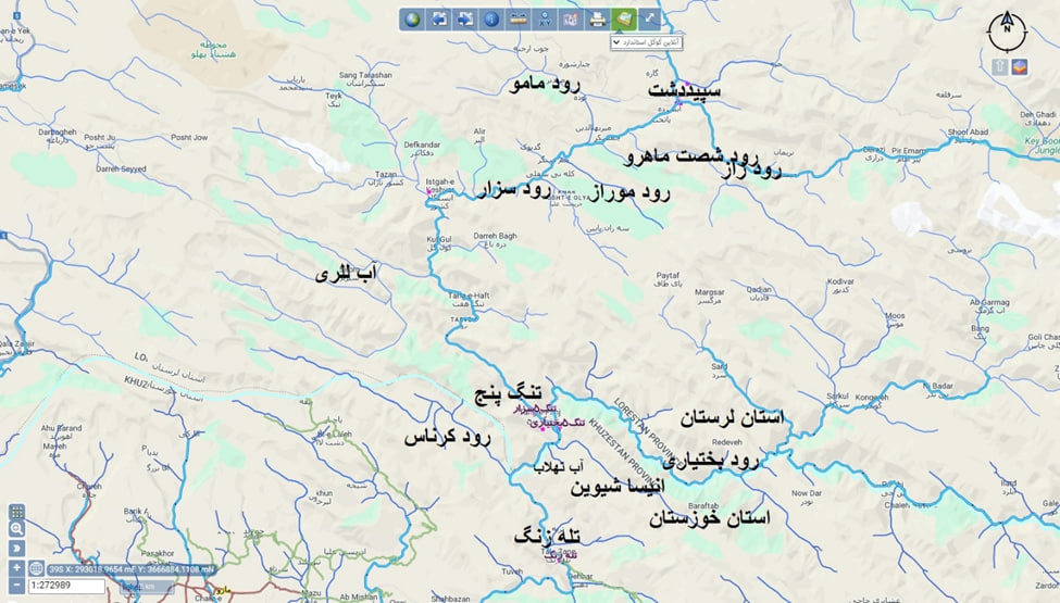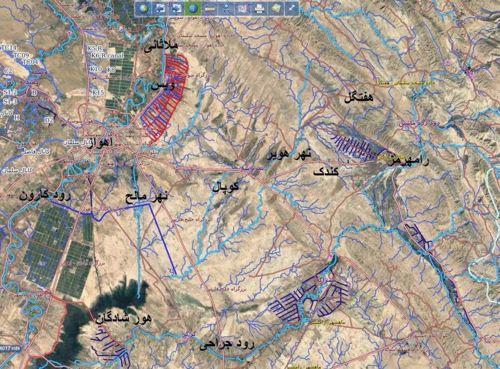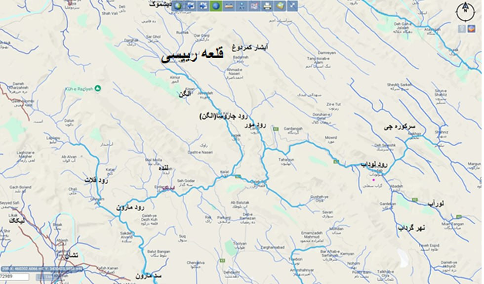 شور لالی+چم برکه+رنگرزی=شور لالی کارون+شور لالی+نهر تلوگ+نهرکیارس= کارون(در محل سد گتوند علیا)
