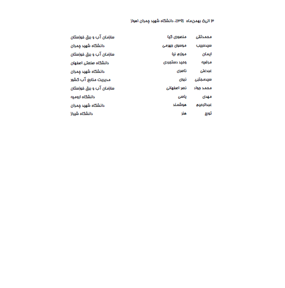 روح اله مهربانی با مقاله ردیابی و اندازه گیری جریان غلیظ رسوبی در مخزن سد مارون ( سال 90-91)